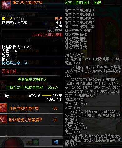 | 85 | 血色残阳狼魂护肩 | *昨日之巴斯顿 掉落 (在远古地下城里出没。) *从NPC鲁特的物品店出售的[血色残阳防具礼盒]中获得 |