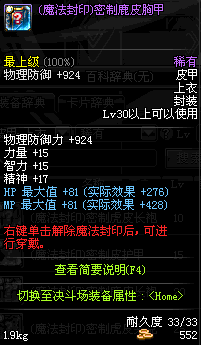 | 25 | (魔法封印)密制虎皮夹克 | *Lv24~31普通地下城怪物掉落 *在NPC阿尔伯特·伯恩斯坦的物品店购买 *完成[石像的媒介物]任务 *使用Lv24~31怪物掉落的设计图进行制作 |