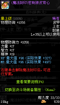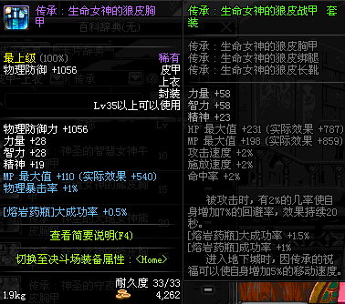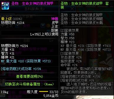 | 35 | 圣物 :生命女神的狼皮胸甲 | *Lv34~41普通地下城怪物掉落 |