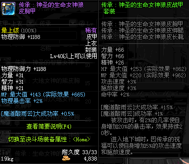 | 40 | 圣物 :荣耀的生命女神的狼皮胸甲 | *Lv39~46普通地下城怪物掉落 |