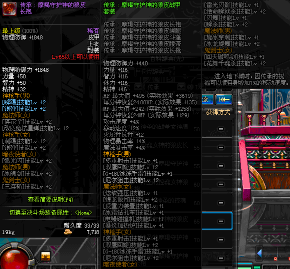 | 65 | 圣物 :摩羯守护神的狼皮长袍 | *Lv65~71普通地下城怪物掉落 |