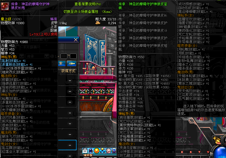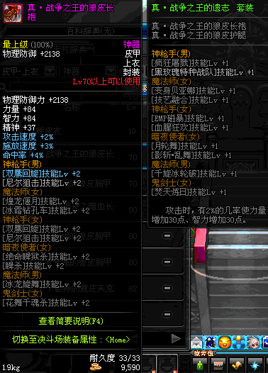 | 70 | *设计图(70LV以上普通地下城 登场的NPC加百利 出售) *战争之王的狼皮长袍 → 用远古神器装备进化书升级(NPC船长鲁特 出售) |