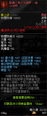 | 70 | 裂魂之异次元胸甲 - 战斗法师 | |||