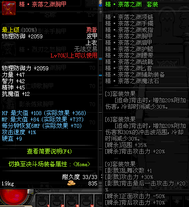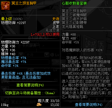 | 70 | 冥王之预言胸甲 | *Lv69~76深渊地下城怪物掉落 | 心脏收割者套装 | |