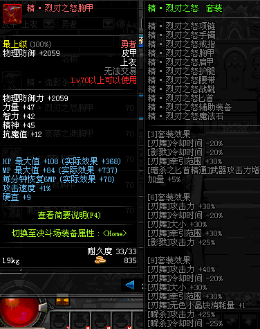 | 70 | 精·烈刃之怒胸甲 | |||
