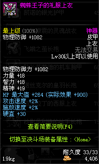 | 30 | 蜘蛛王子的礼服上衣 | *蜘蛛王子尼古拉斯 掉落(蜘蛛王国) *在NPC克伦特的物品店购买(阿拉德陨石×64) |