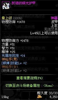 | 45 | 凯诺的银光护甲 | *落雷凯诺 掉落(冰刺庭院) *在NPC敏泰的物品店购买(阿拉德陨石×147) |