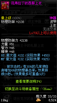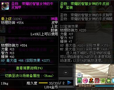 | 10 | 圣物 :荣耀的智慧女神的牛皮胸甲 | *Lv8~14普通地下城怪物掉落 |