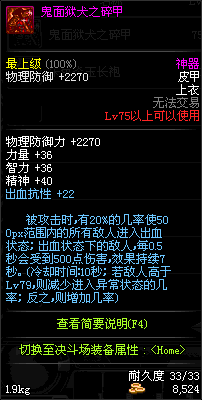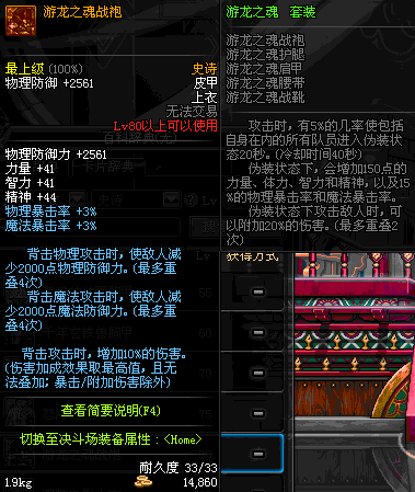 | 80 | 游龙之魂战袍 | *Lv79~86深渊地下城怪物掉落 | 游龙之魂 套装 | |