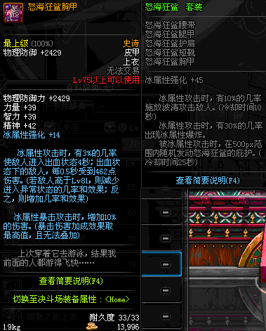 | 75 | 怒海狂鲨胸甲 | *Lv74~81深渊地下城怪物掉落 | 怒海狂鲨 套装 | |