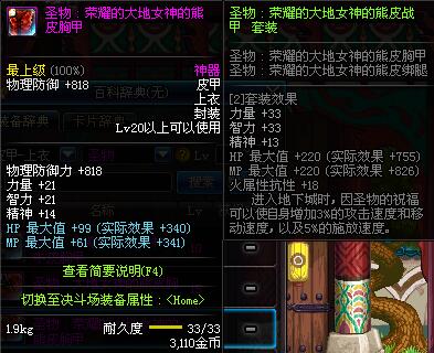 | 20 | 圣物 :荣耀的大地女神的熊皮胸甲 | *Lv19~26普通地下城怪物掉落 | ||