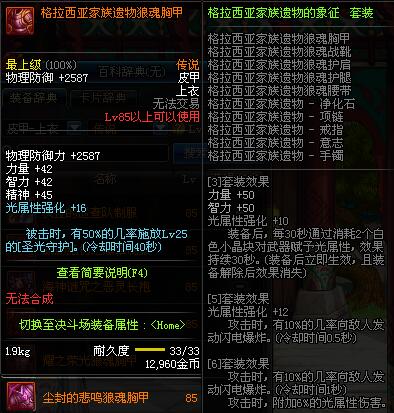 | 85 | 圣物 :荣耀的天马守护神的狼皮长袍 | *Lv85~91普通地下城怪物掉落 | ||