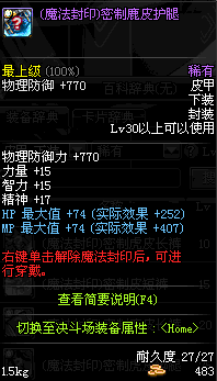| 20 | (魔法封印)密制鹿皮长裤 | *Lv19~26普通地下城怪物掉落 *完成[烦人的蚂蚁]任务 *使用Lv19~26怪物掉落的设计图进行制作 |