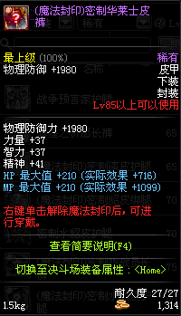 | 魔法封印 皮甲-下装 | ||||