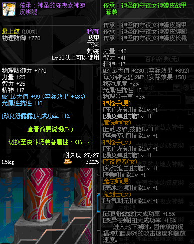 | 30 | 圣物 :荣耀的守夜女神的蟒皮绑腿 | *Lv29~36普通地下城怪物掉落 |