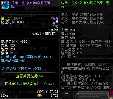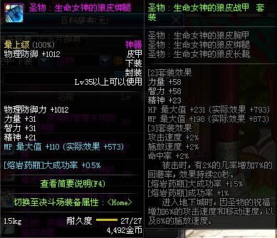 | 35 | 圣物 :生命女神的狼皮绑腿 | *Lv34~41普通地下城怪物掉落 |