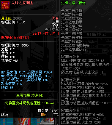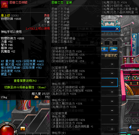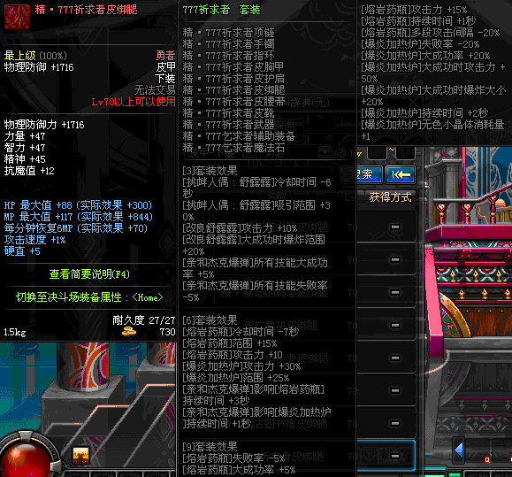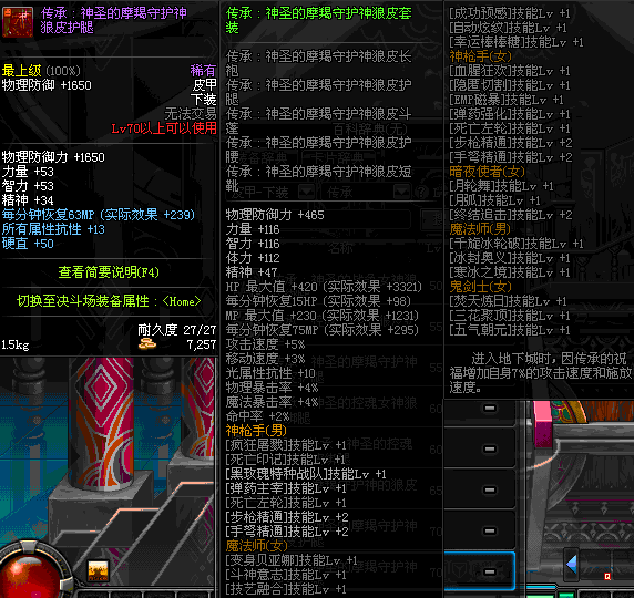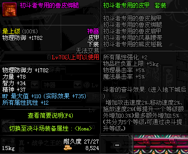 | 70 | *设计图(70LV以上普通地下城 登场的NPC加百利 出售) *战争之王的狼皮护腿 → 用远古神器装备进化书升级(NPC船长鲁特 出售) |