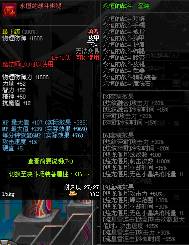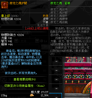 | 80 | 游龙之魂护腿 | *Lv79~86深渊地下城怪物掉落 | 游龙之魂 套装 | |