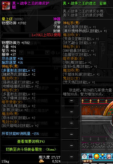 | 辅助装备: | 全职业 鬼剑士 女鬼剑 女格斗 男格斗 神枪手 女枪手 魔法师 男法师 圣职者 暗夜使者 守护者 |