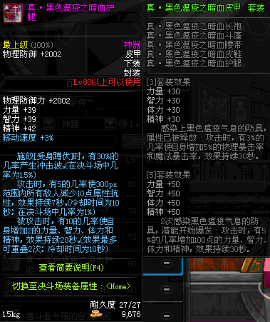 | 80 | *设计图(70LV以上普通地下城 登场的NPC加百利 出售) *黑色瘟疫之暗血护腿 → 用远古神器装备进化书升级(NPC船长鲁特 出售) |