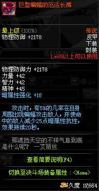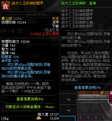 | 85 | 战术之王的御敌腿甲 | *Lv84~91深渊地下城怪物掉落 | 战术之王的御敌 套装 | |