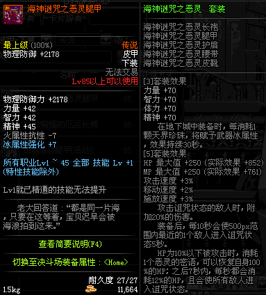 | 85 | 海神谜咒之恶灵腿甲 | *昨日之巴斯顿 掉落 (在远古地下城里出没。) *从NPC鲁特的物品店出售的[海神谜咒防具礼盒]中获得 *船长鲁特 出售 (深海诅咒 : 解咒法×60) |