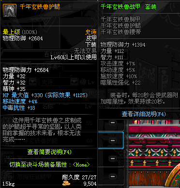 | 60 | 千年玄铁兽护腿 | *在NPC歌兰蒂斯·格拉西亚的物品店购买 | 千年玄铁兽战甲 套装 | |