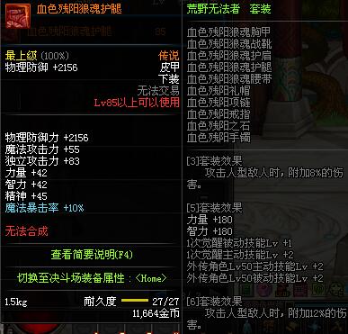 | 85 | 血色残阳狼魂护腿 | *昨日之巴斯顿 掉落 (在远古地下城里出没。) *从NPC鲁特的物品店出售的[血色残阳防具礼盒]中获得 |