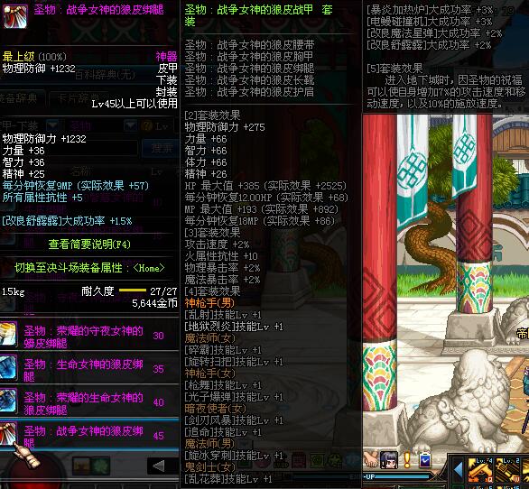 | 45 | 圣物 :战争女神的狼皮绑腿 | *Lv45~51普通地下城怪物掉落 |
