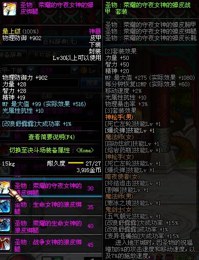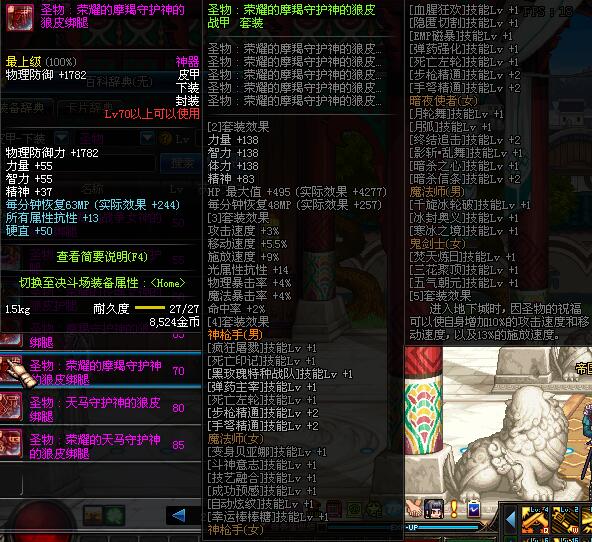 | 10 | 圣物 :荣耀的智慧女神的牛皮绑腿 | *Lv8~14普通地下城怪物掉落 |