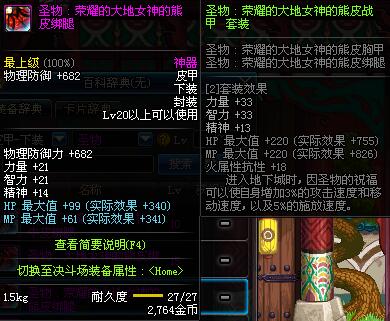 | 20 | 圣物 :荣耀的大地女神的熊皮绑腿 | *Lv19~26普通地下城怪物掉落 | ||