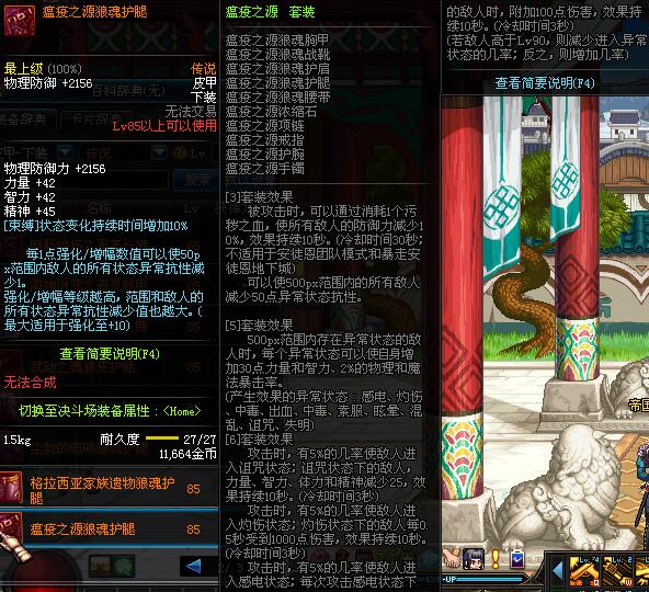 | 85 | 瘟疫之源狼魂护腿 | *昨日之巴斯顿 掉落 (在远古地下城里出没。) *从NPC鲁特的物品店出售的[瘟疫之源防具礼盒]中获得 |