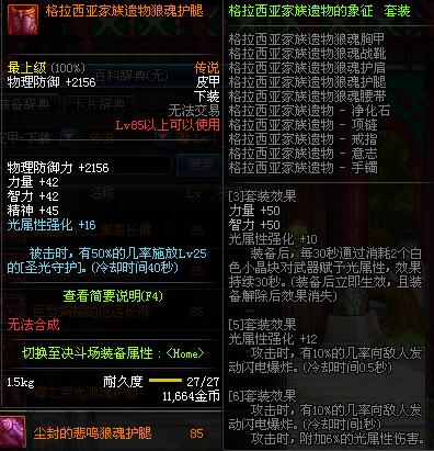 | 85 | 圣物 :荣耀的天马守护神的狼皮绑腿 | *Lv85~91普通地下城怪物掉落 | ||