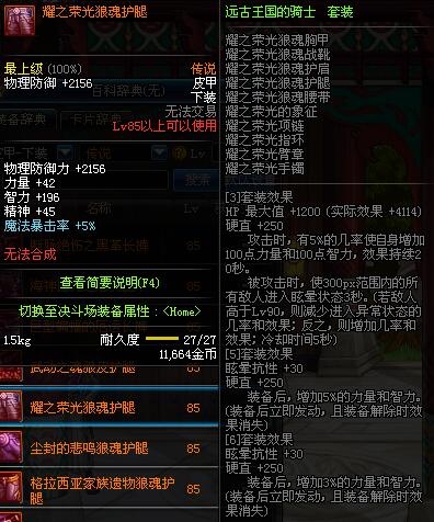 | 85 | 耀之荣光狼魂护腿 | *昨日之巴斯顿 掉落 (在远古地下城里出没。) *从NPC鲁特的物品店出售的[耀之荣光防具礼盒]中获得 |