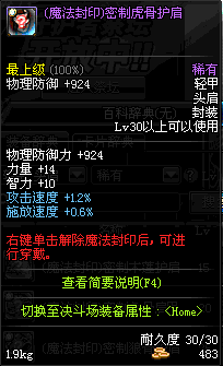 | 30 | (魔法封印)密制虎骨护肩 | *Lv29~36普通地下城怪物掉落 *完成[唤醒亡者的力量]任务 *使用Lv29~36怪物掉落的设计图进行制作 |