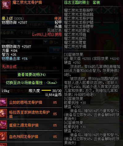 | 85 | 耀之荣光龙骨护肩 | *昨日之巴斯顿 掉落 (在远古地下城里出没。) *从NPC鲁特的物品店出售的[耀之荣光防具礼盒]中获得 |