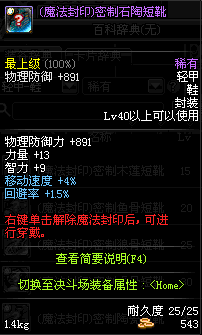| 15 | (魔法封印)密制木莲短靴 | *Lv13~21普通地下城怪物掉落 *完成[[魔法封印防具]天才武道家的试炼(3/3)]任务 *使用Lv13~21怪物掉落的设计图进行制作 |