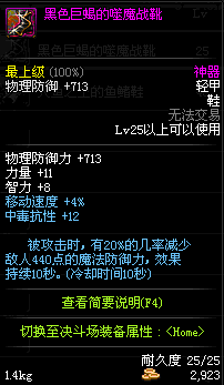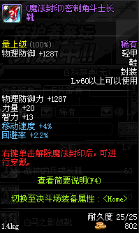 | 45 | 圣物 :战争女神的黑陶黑陶长靴 | *Lv45~51普通地下城怪物掉落 |