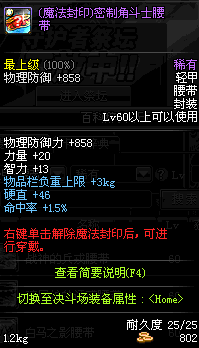 | 35 | (魔法封印)密制陶瓷腰带 | *Lv34~41普通地下城怪物掉落 |
