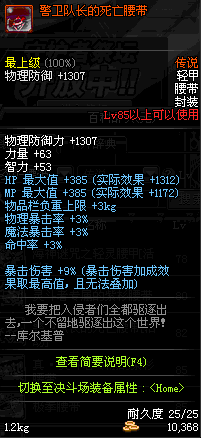 | 80 | 真 · 黑色瘟疫之枯骨腰带 | *设计图(70LV以上普通地下城 登场的NPC加百利 出售) *黑色瘟疫之枯骨腰带 → 用远古神器装备进化书升级(NPC船长鲁特 出售) |