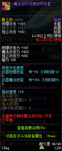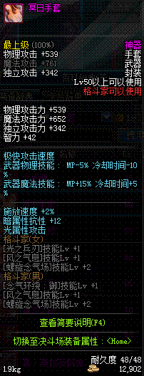 | 50 | 冥日手套 | *Lv50~56普通地下城怪物掉落 *在加百利的神秘商店购买 |