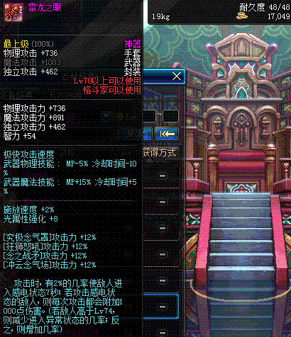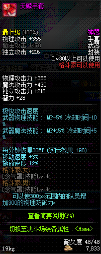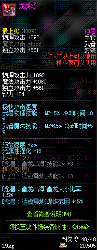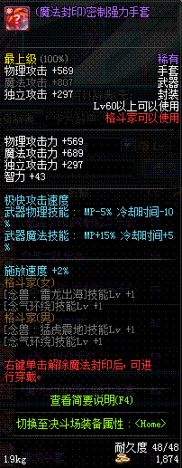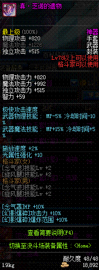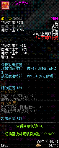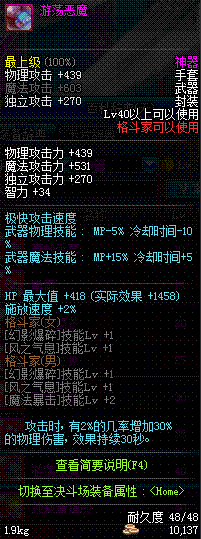 | 辅助装备: | 全职业 鬼剑士 女鬼剑 女格斗 男格斗 神枪手 女枪手 魔法师 男法师 圣职者 暗夜使者 守护者 |