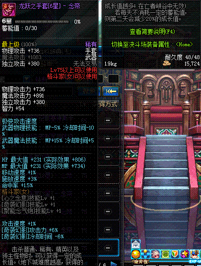 | 75 | 龙跃之手套[6星] - 念皇 | *完成二次觉醒任务后可以从NPC小铁柱处获得此道具。 | ||