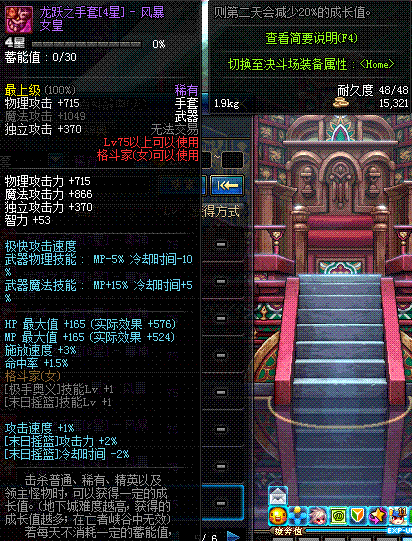 | 75 | 龙跃之手套[3星] - 风暴女皇 | *完成二次觉醒任务后可以从NPC小铁柱处获得此道具。 | ||