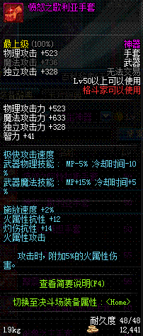| 50 | 愤怒之歌利亚手套 | *歌利亚 掉落(地下城: 暮色之城) *在NPC敏泰的物品店购买(阿拉德陨石×285) |