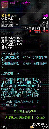 | 55 | 邪龙的尸毒手套 | *邪龙斯皮兹 掉落(地下城: 邪龙的封印) *在NPC克伦特的物品店购买(阿拉德陨石×330) |