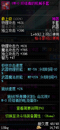 | 60 | UM-0 终结者的机械手套 | *UM-0最后通牒 掉落(地下城: 补给线阻断战) **在NPC泽丁·施奈德的物品店购买(黑色陨石×375) |