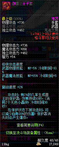 | 70 | 御兽之王手套 | *兽王 乌塔拉 掉落(地下城: 格兰之火) *在NPC西岚的物品店购买(银色陨石×495) |