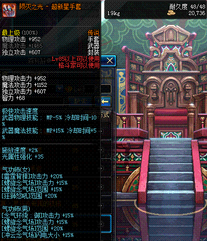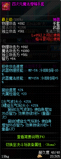 | 85 | 四次元魔法增幅手套 | *黄金小丑 掉落(地下城: 光之舞会) *在NPC猎手伯恩的物品店购买(遗忘陨石×600) |