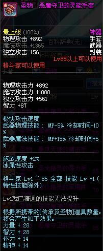 | 85 | (魔法封印)密制灵能手套 | *Lv85~91普通地下城怪物掉落 *完成[黑色迷雾]任务 |